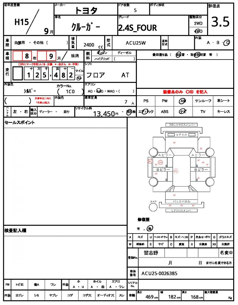 | VIN/Serial No. | ACU25-0026385 |