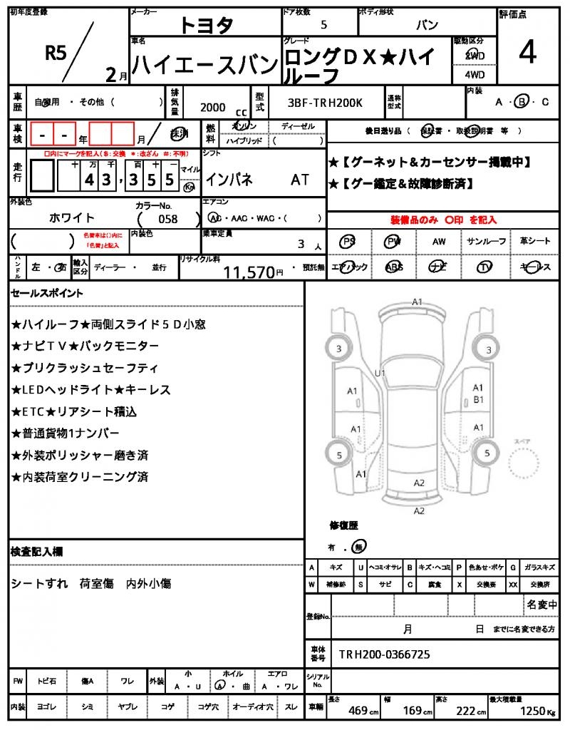 | VIN/Serial No. | TRH200-0366725 |