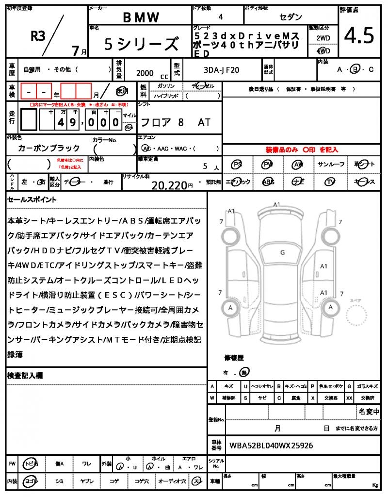 | VIN/Serial No. | WBA52BL040WX25926 |
