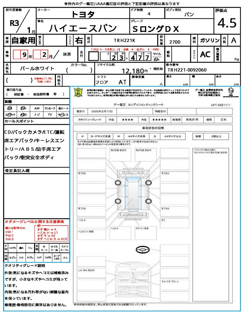 VIN/Serial No. TRH221-0092060