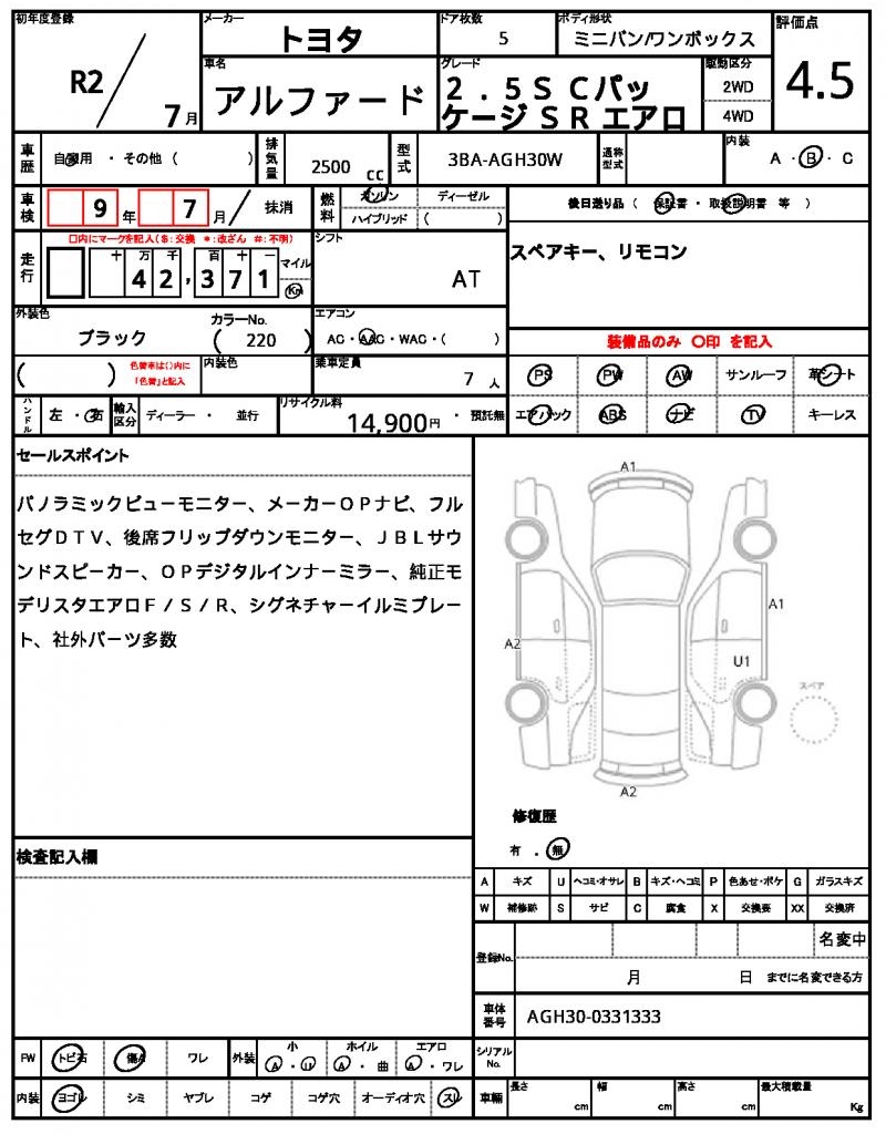| VIN/Serial No. | AGH30-0331333 |