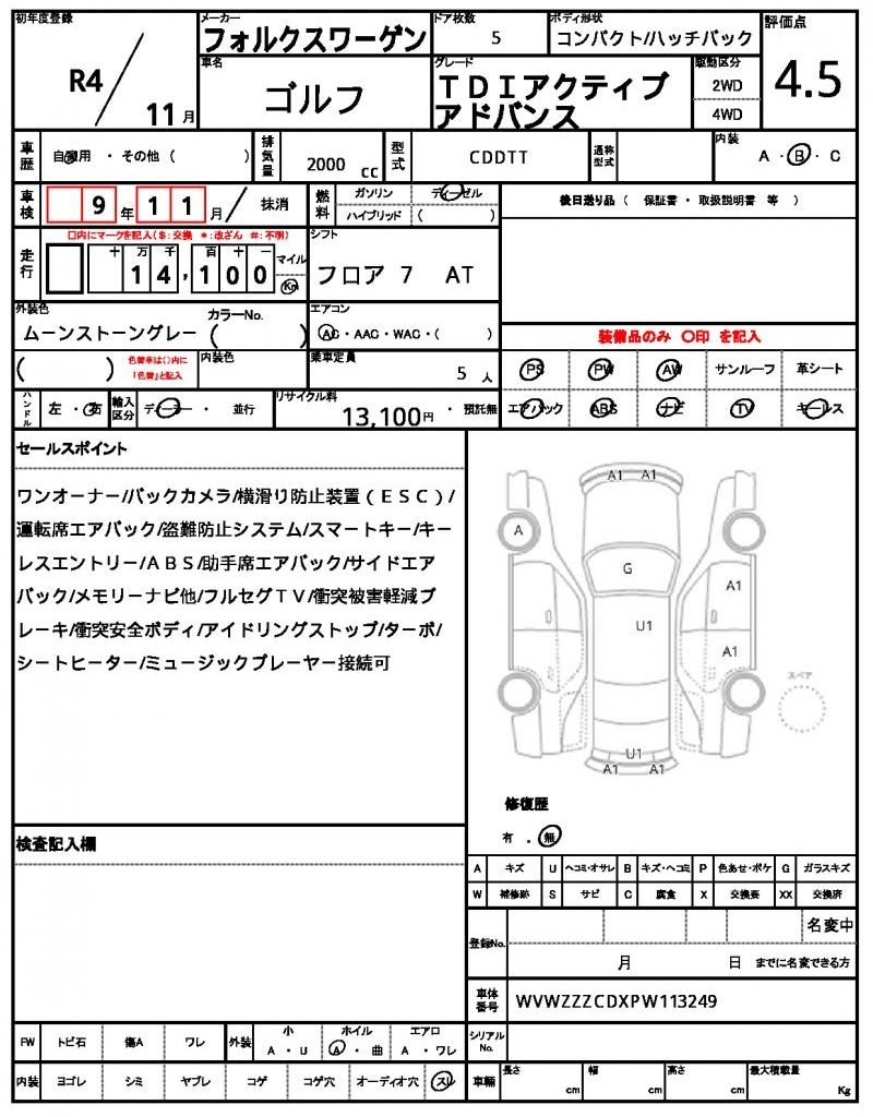 | VIN/Serial No. | WVWZZZCDXPW113249 |