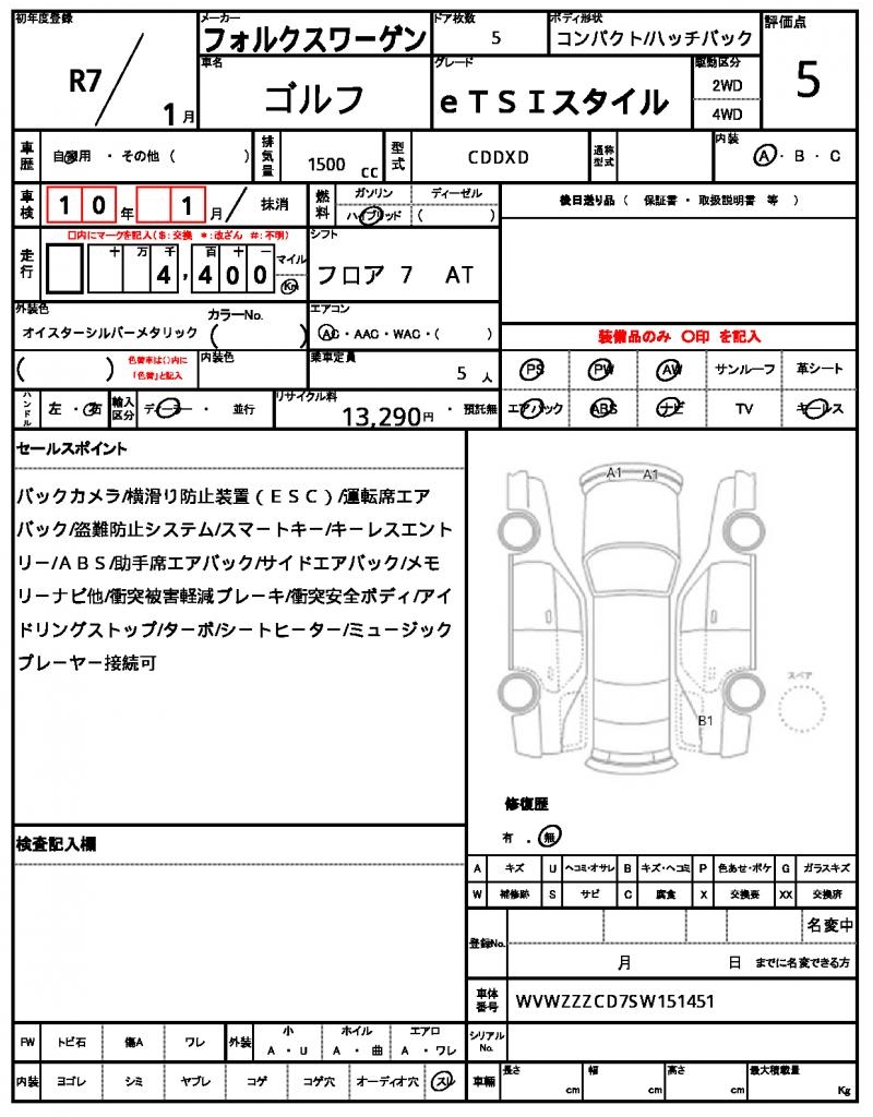 | VIN/Serial No. | WVWZZZCD7SW151451 |