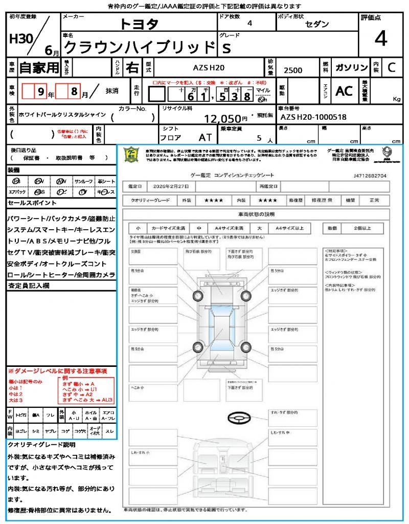 | VIN/Serial No. | AZSH20-1000518 |