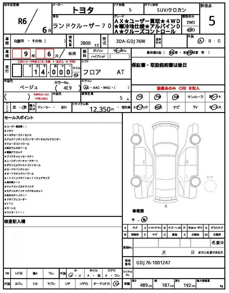 | VIN/Serial No. | GDJ76-1001247 |