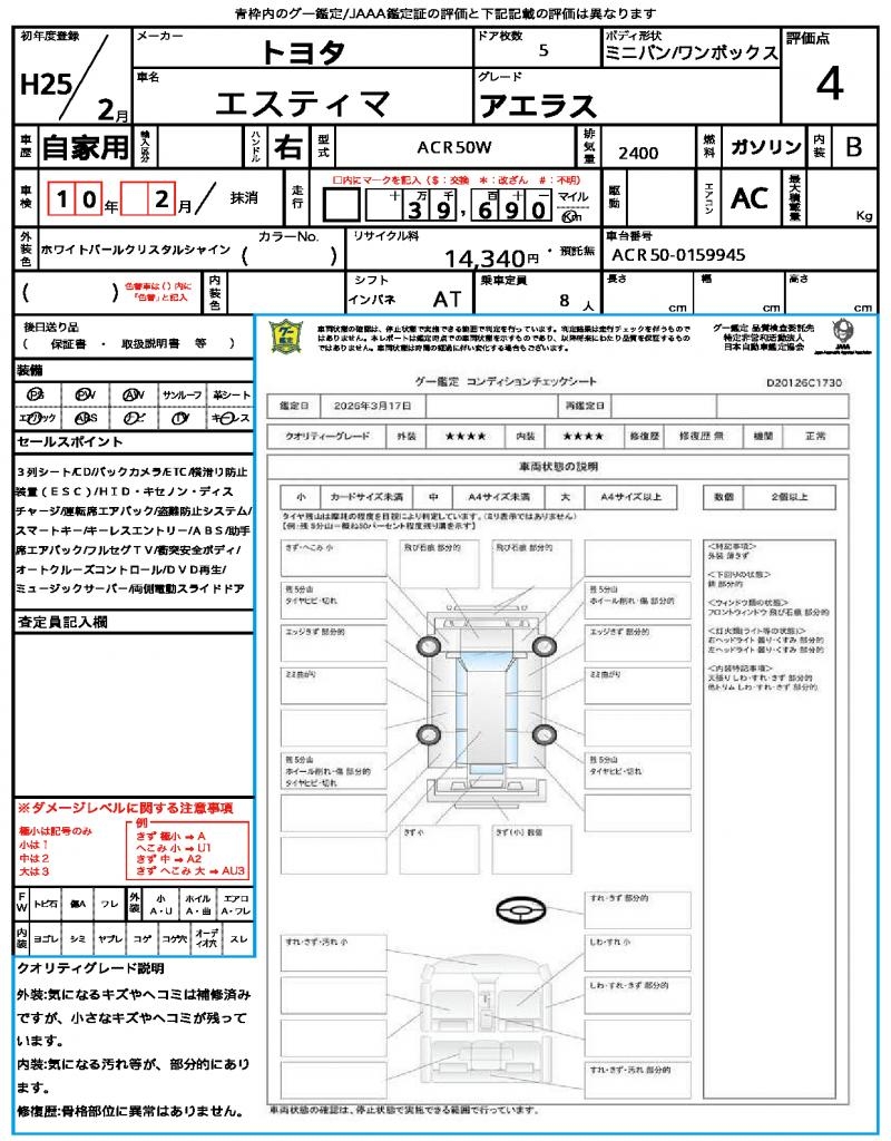 | VIN/Serial No. | ACR50-0159945 |