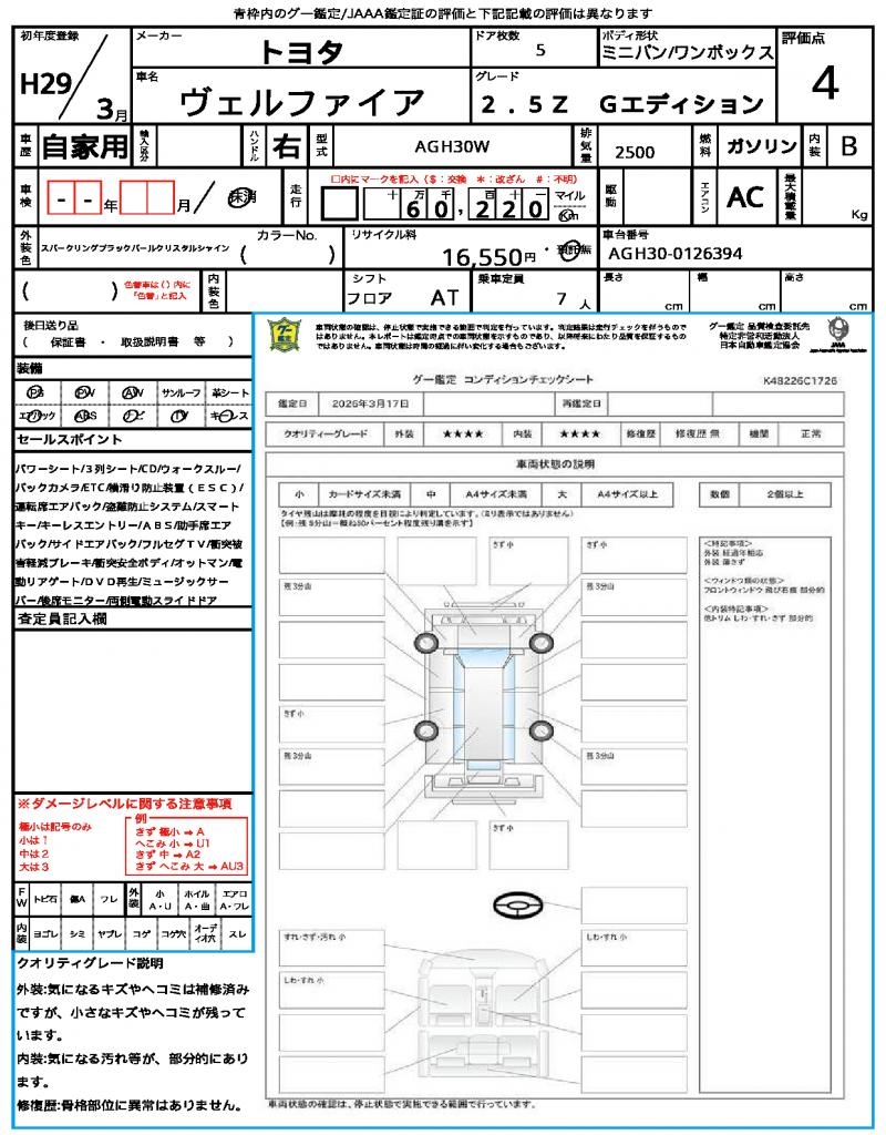| VIN/Serial No. | AGH30-0126394 |