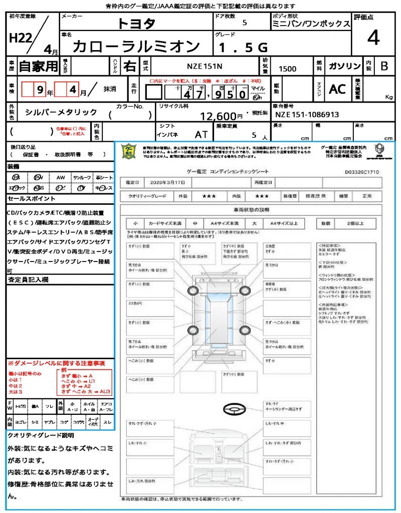 | VIN/Serial No. | NZE151-1086913 |