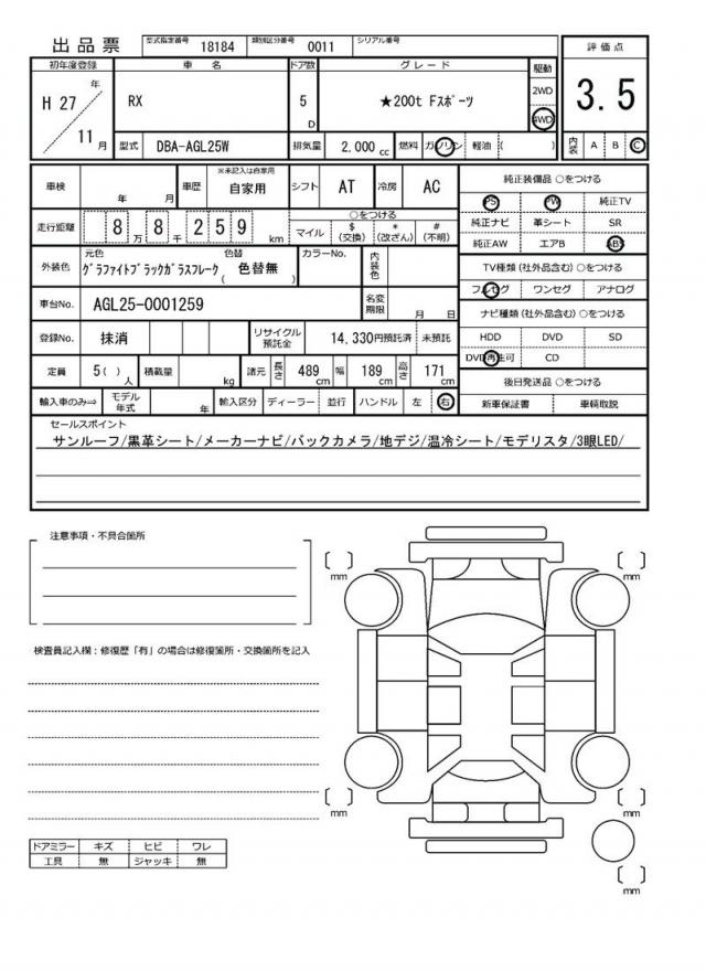 | VIN/Serial No. | AGL25-0001259 |