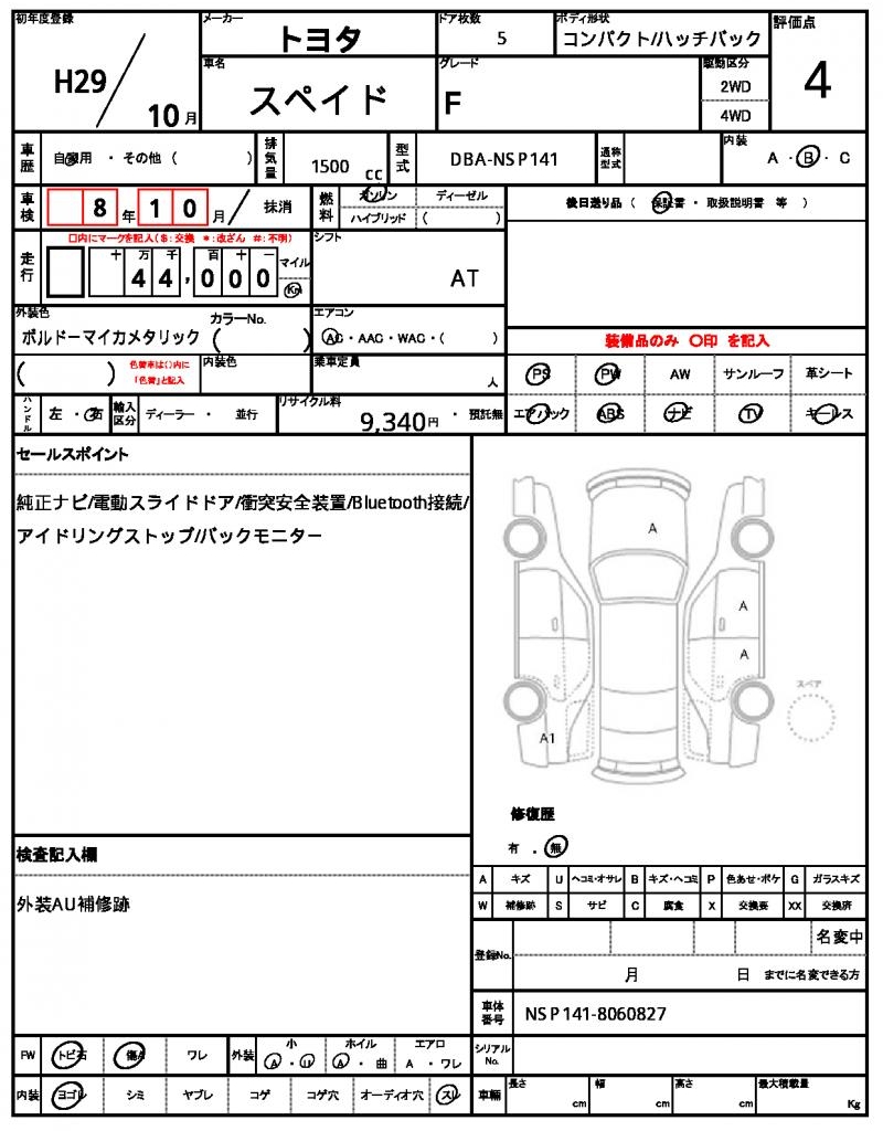 | VIN/Serial No. | NSP141-8060827 |