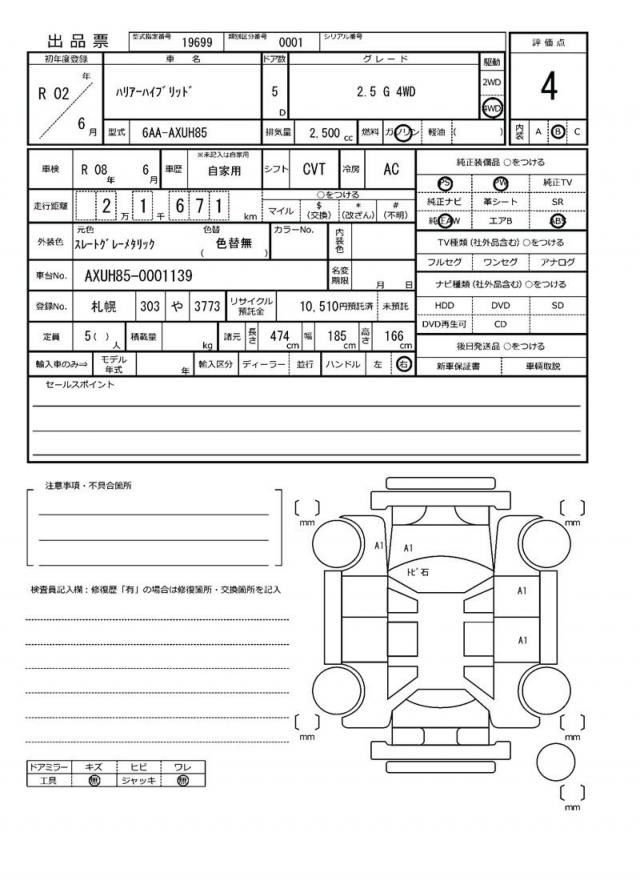 | VIN/Serial No. | AXUH85-0001139 |