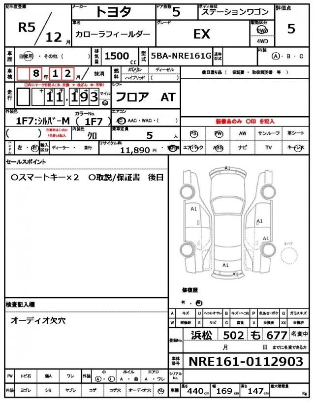 | VIN/Serial No. | NRE161-0112903 |