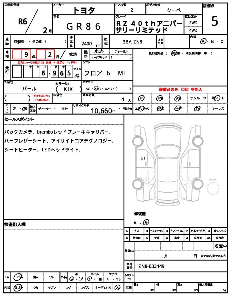 | Model code | 3BA-ZN8 |