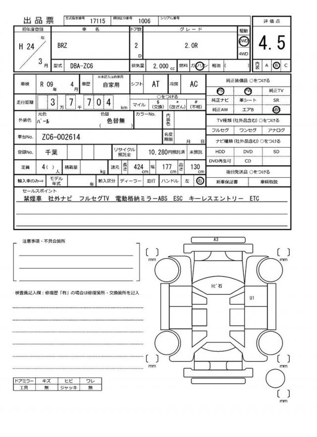| VIN/Serial No. | ZC6-002614 |