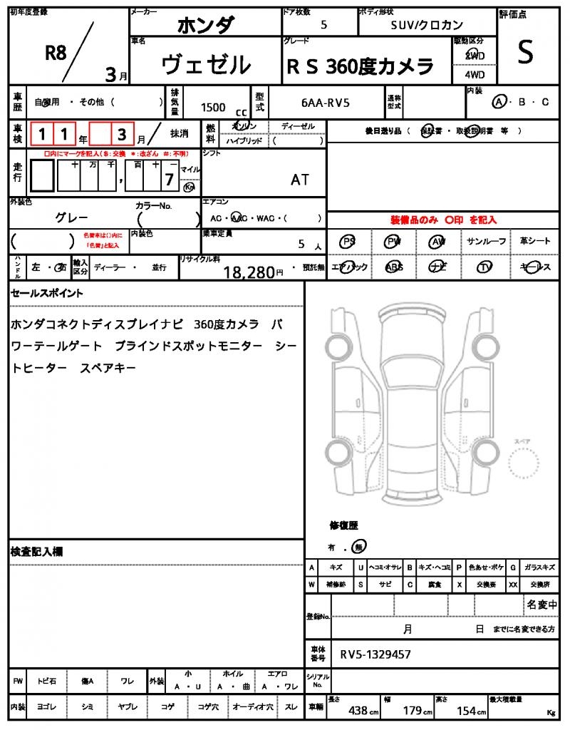 | VIN/Serial No. | RV5-1329457 |