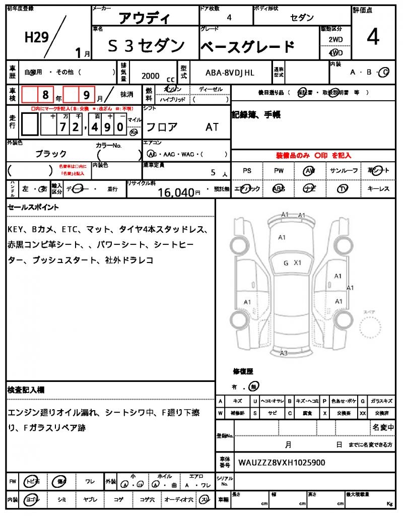 | VIN/Serial No. | WAUZZZ8VXH1025900 |