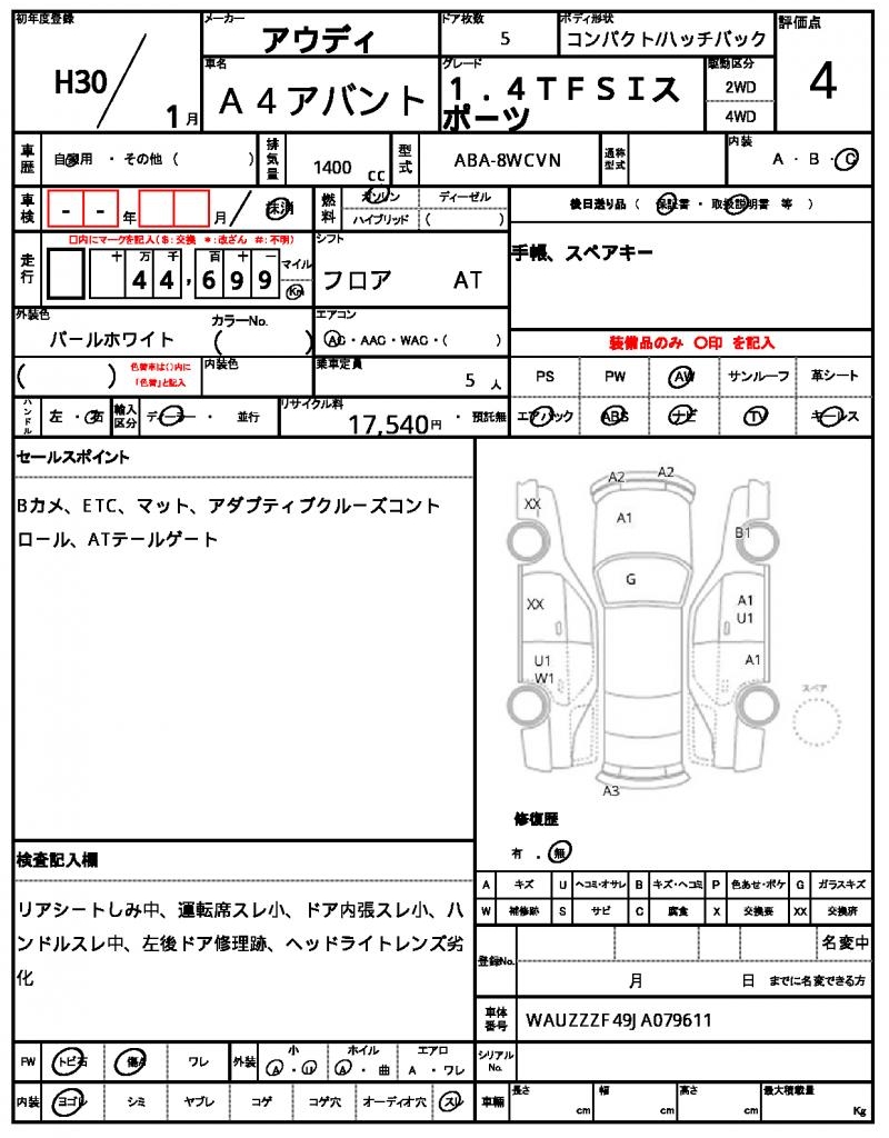| VIN/Serial No. | WAUZZZF49JA079611 |