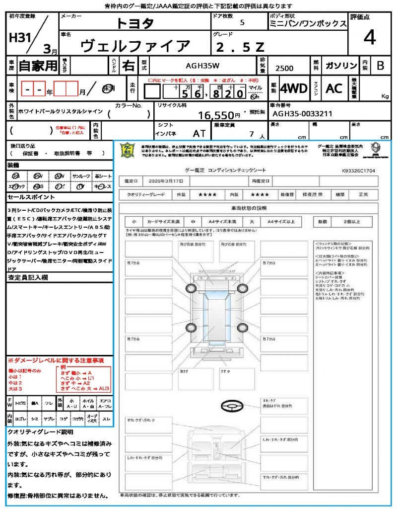 | VIN/Serial No. | AGH35-0033211 |