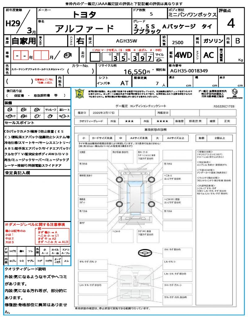 | VIN/Serial No. | AGH35-0018349 |