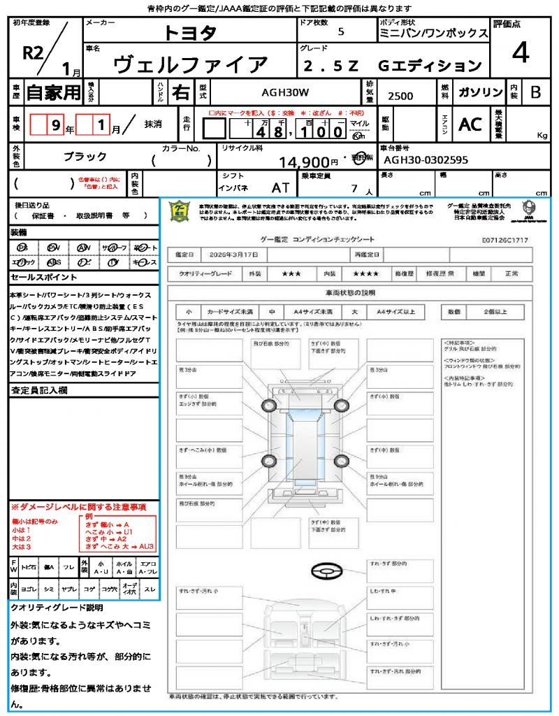 | VIN/Serial No. | AGH30-0302595 |