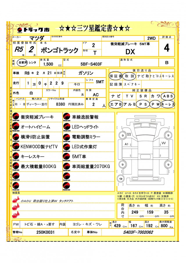 | Anti-Lock Brakes/Driver Airbag/Navigation System/Power Steering/Power Windows/TV | |