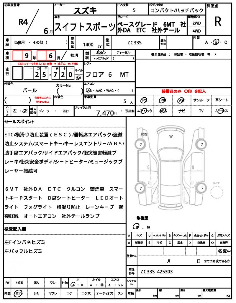| VIN/Serial No. | ZC33S-425303 |