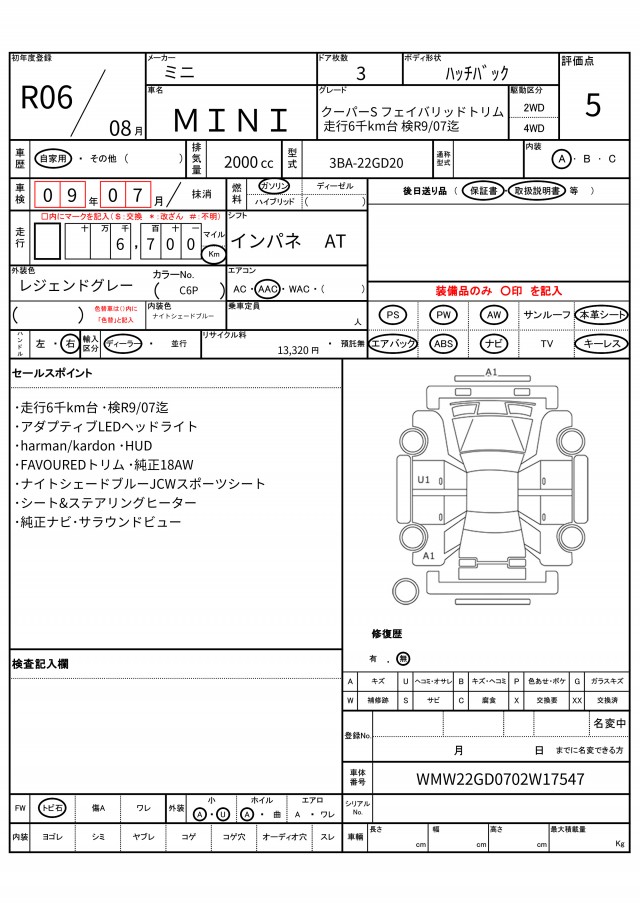 | VIN/Serial No. | WMW22GD0702W17547 |