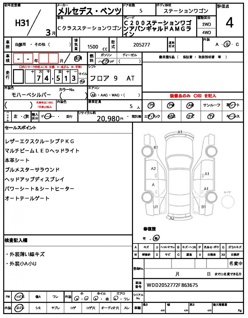 2019 MERCEDES BENZ C-CLASS STATIONWAGON