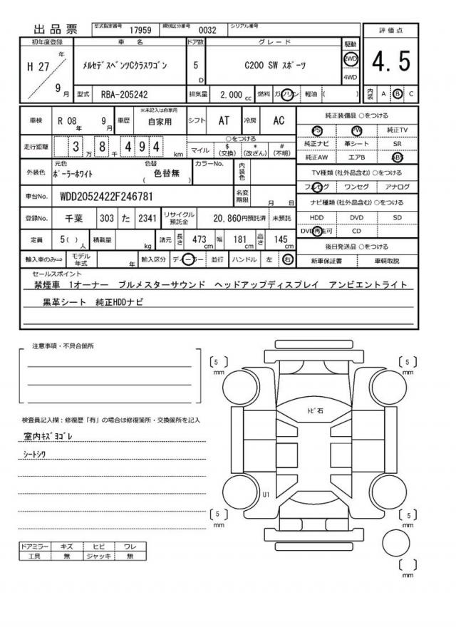 2015 MERCEDES BENZ C-CLASS STATIONWAGON