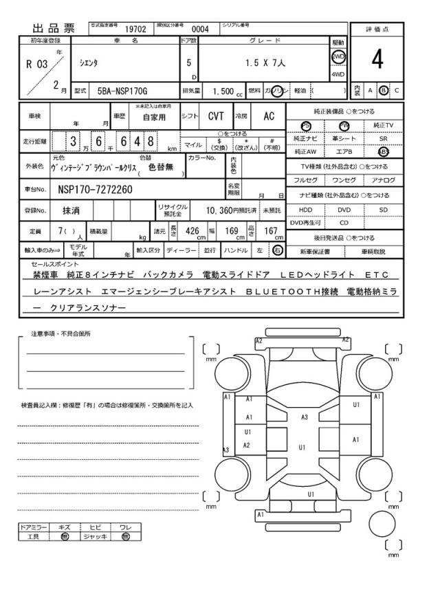 | VIN/Serial No. | NSP170-7272260 |