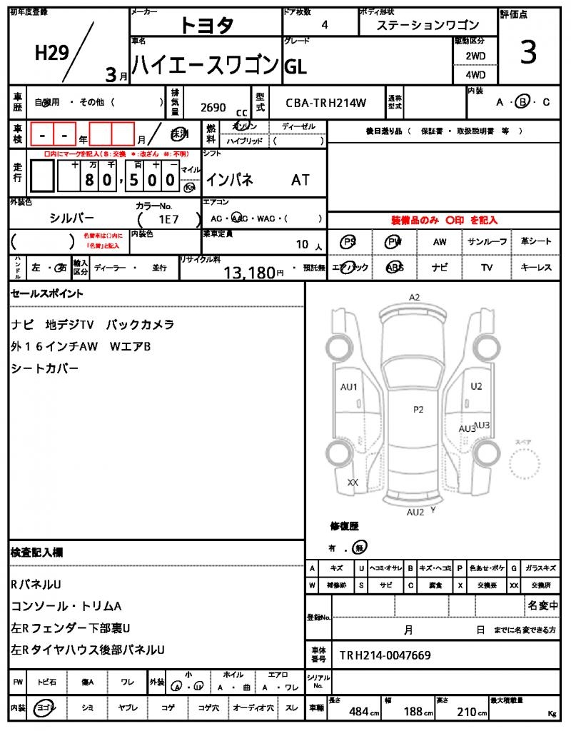 | VIN/Serial No. | TRH214-0047669 |