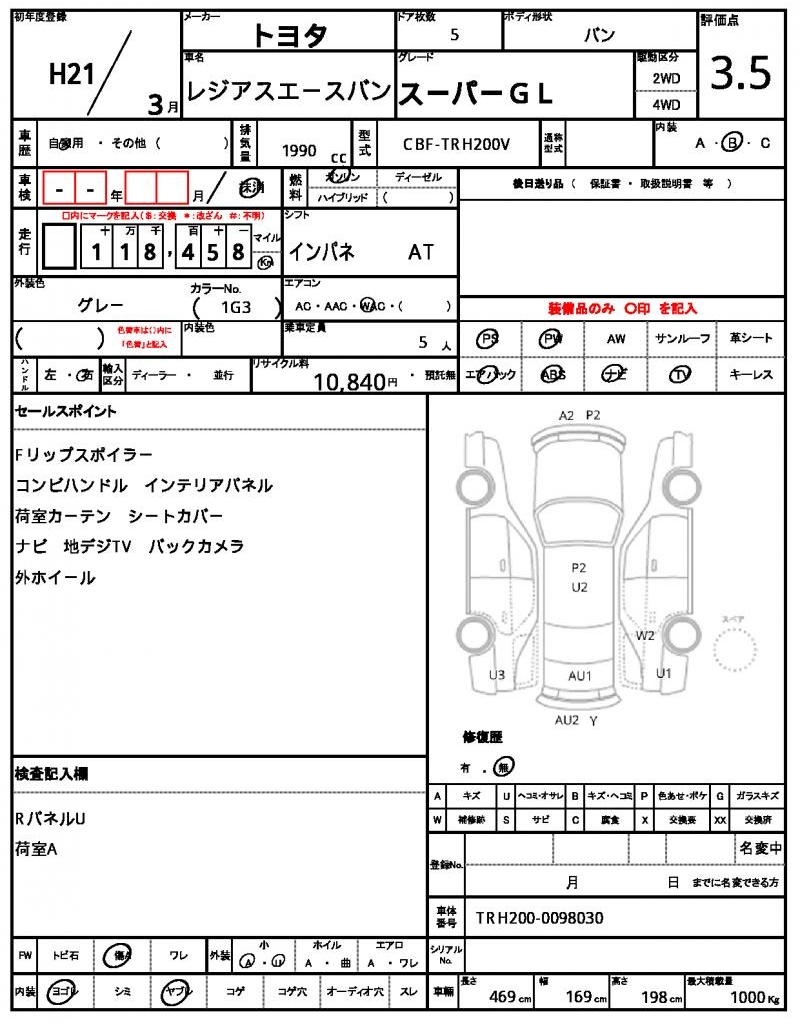 | VIN/Serial No. | TRH200-0098030 |
