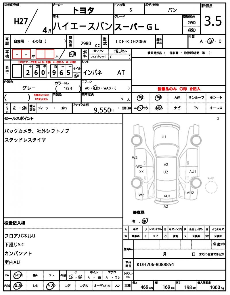 | VIN/Serial No. | KDH206-8088854 |