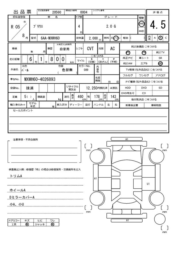 | VIN/Serial No. | MXWH60-4026893 |