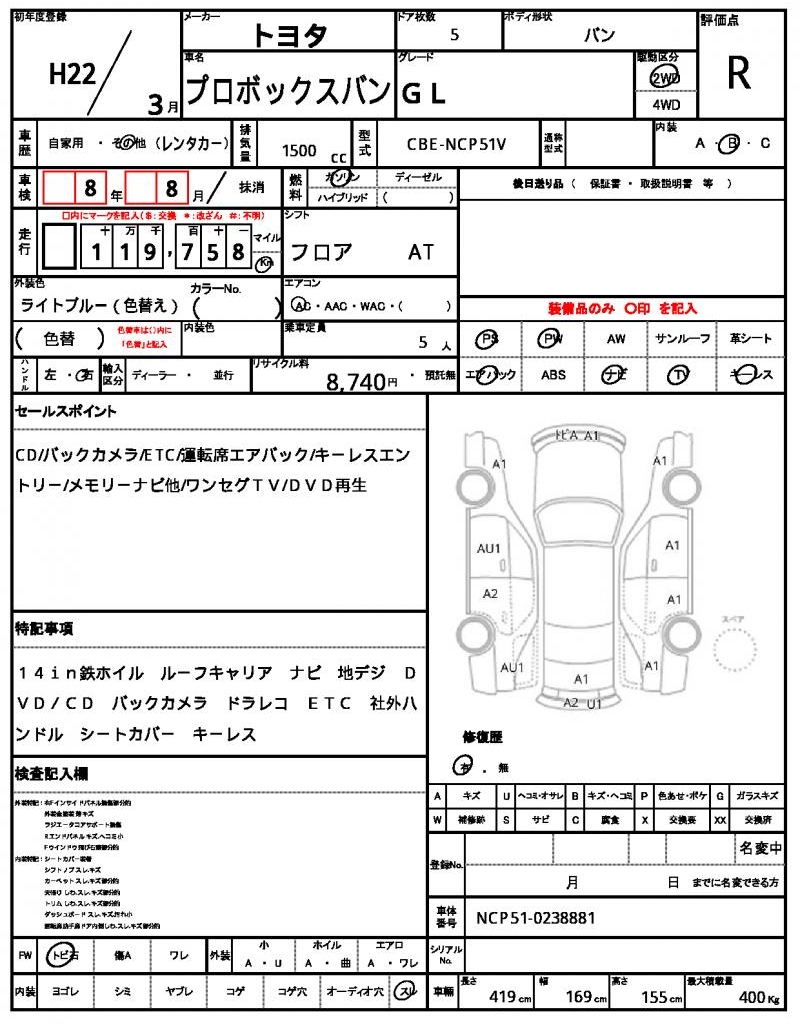| VIN/Serial No. | NCP51-0238881 |