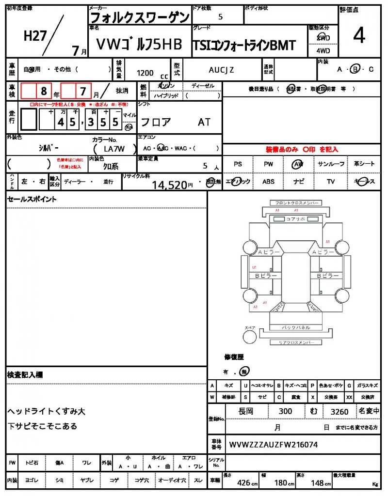 | VIN/Serial No. | WVWZZZAUZFW216074 |
