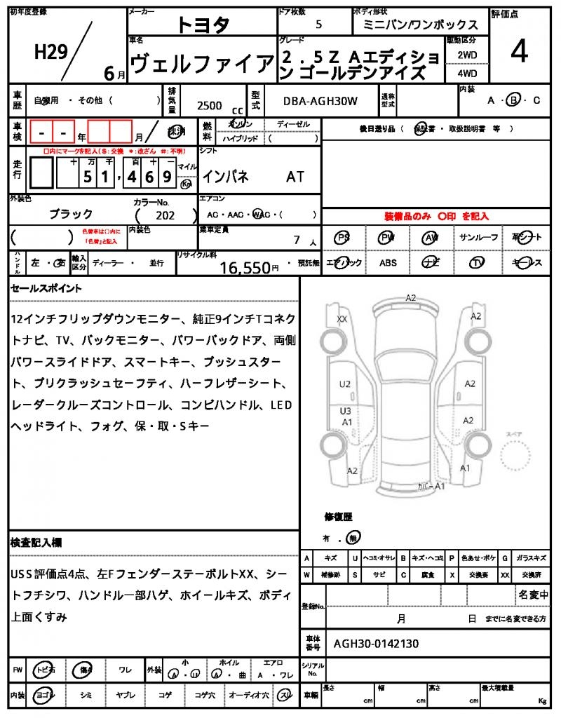 | VIN/Serial No. | AGH30-0142130 |