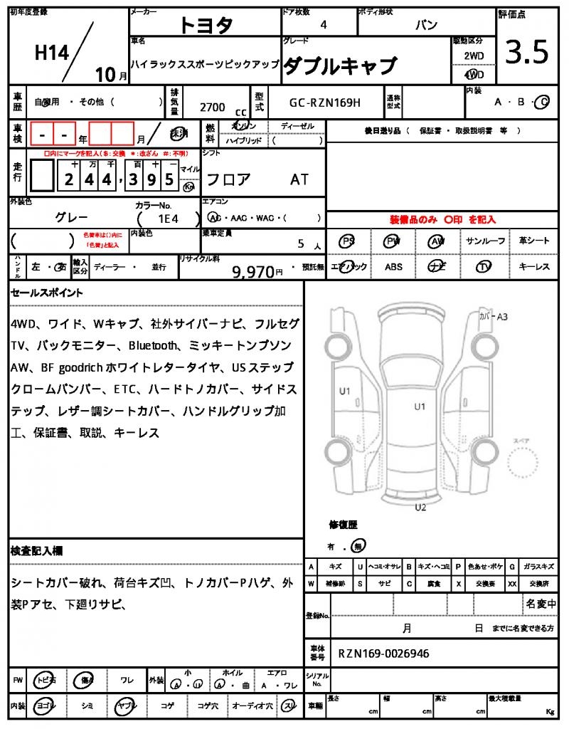 | VIN/Serial No. | RZN169-0026946 |