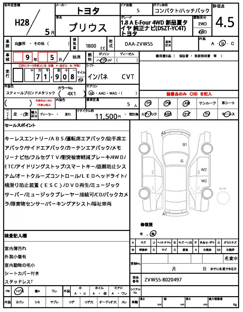 | Model code | DAA-ZVW55 |