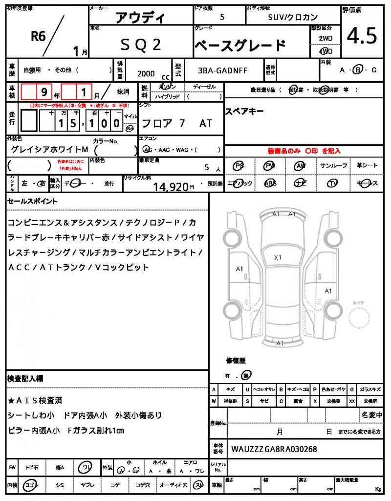 | VIN/Serial No. | WAUZZZGA8RA030268 |
