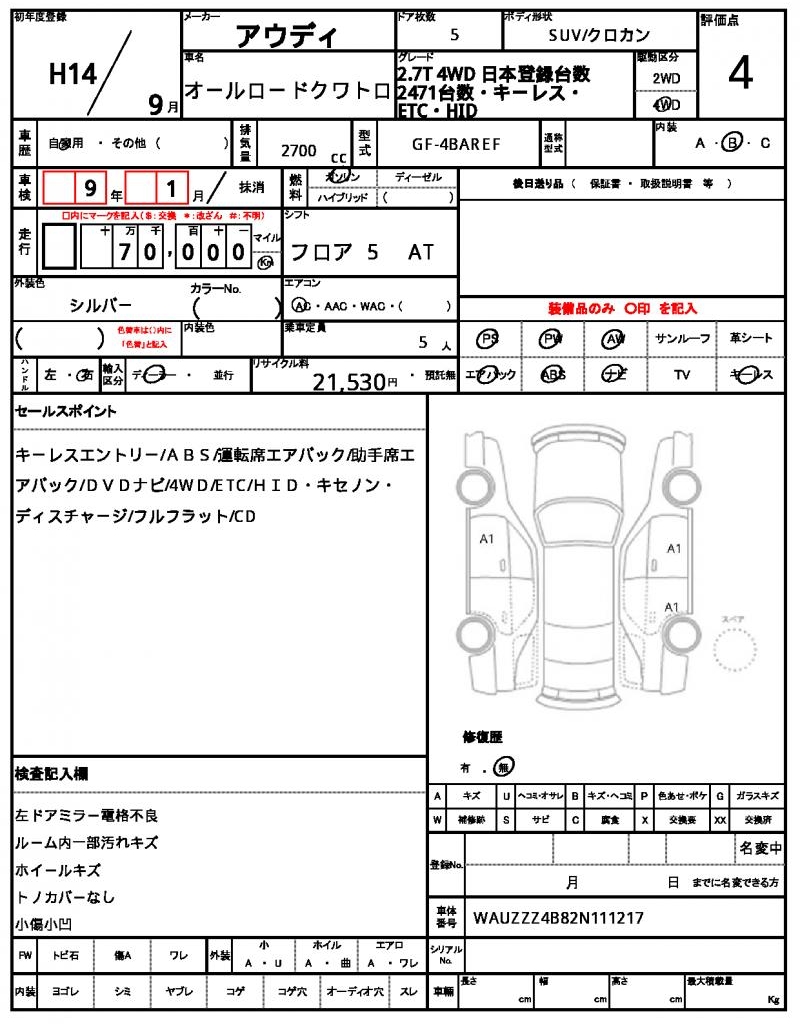 VIN/Serial No. WAUZZZ4B82N111217