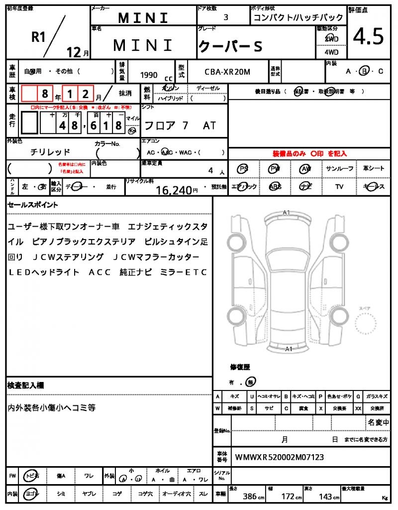 VIN/Serial No. WMWXR520002M07123