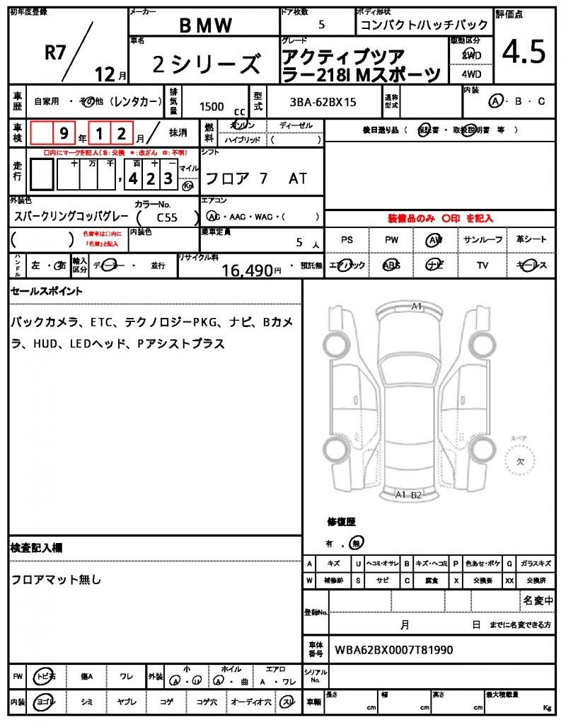 VIN/Serial No. WBA62BX0007T81990