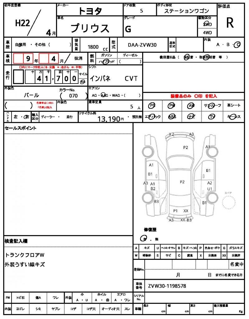 | VIN/Serial No. | ZVW30-1198578 |