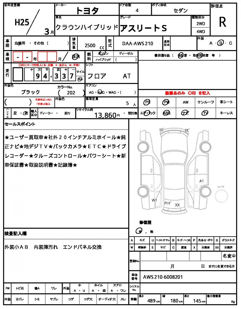 | VIN/Serial No. | AWS210-6008201 |