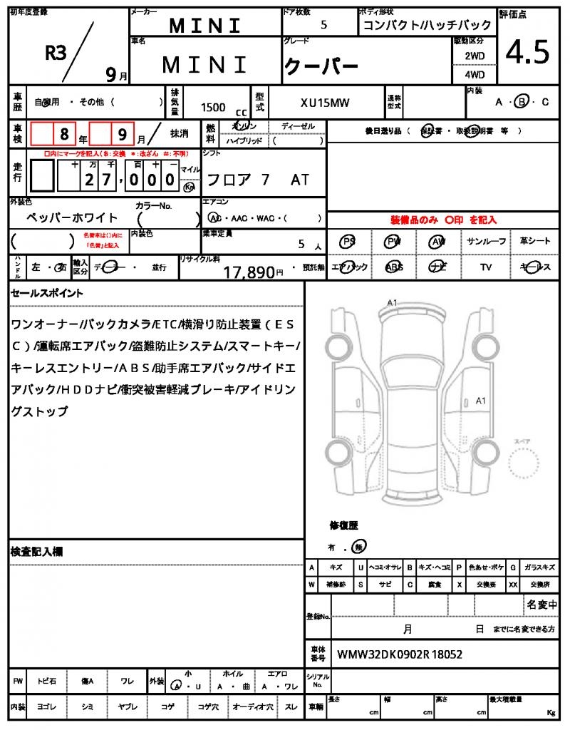 | VIN/Serial No. | WMW32DK0902R18052 |