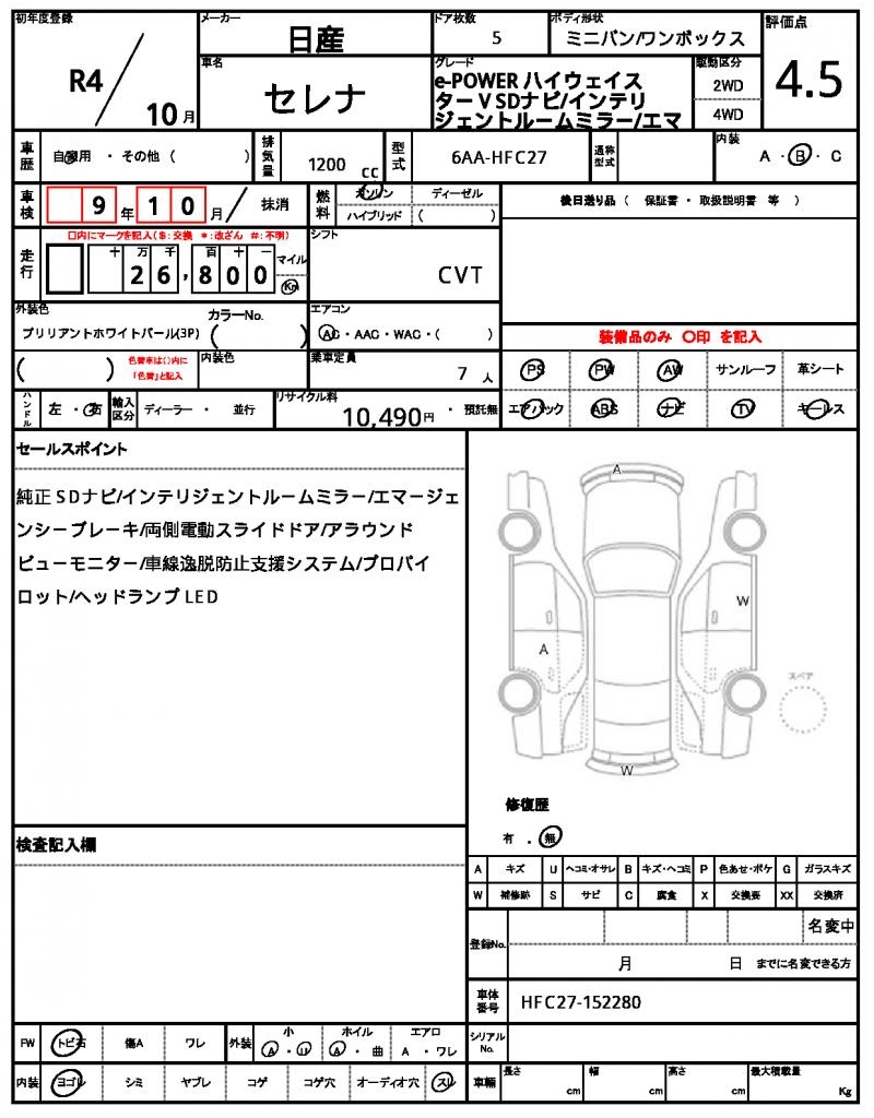 | VIN/Serial No. | HFC27-152280 |
