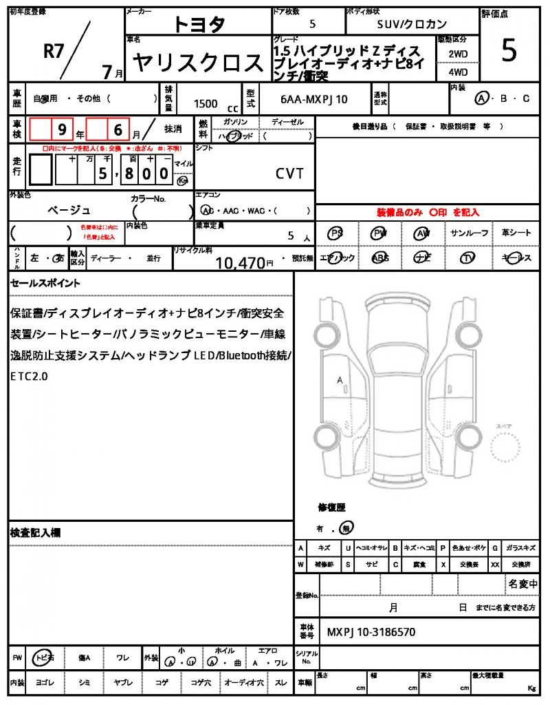| VIN/Serial No. | MXPJ10-3186570 |