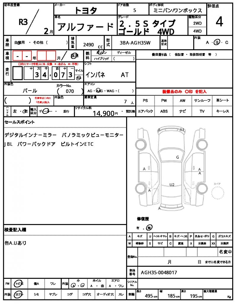 | VIN/Serial No. | AGH35-0048017 |
