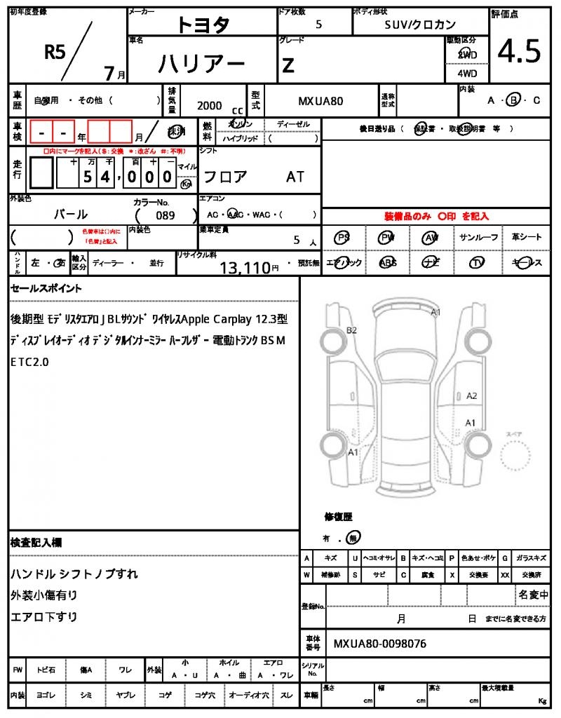 | VIN/Serial No. | MXUA80-0098076 |